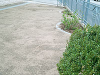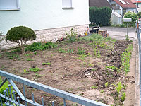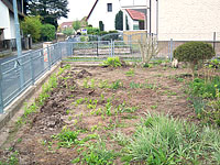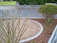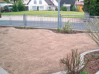 Um ein anderes Bild zu bekommen wurde ein Einzeiler gebogen um das Pflanzbeet gesetzt. Die Rasenfläche wurde vorbereitet und anschließend angesät sowie etwas Rindenmulch verteilt.